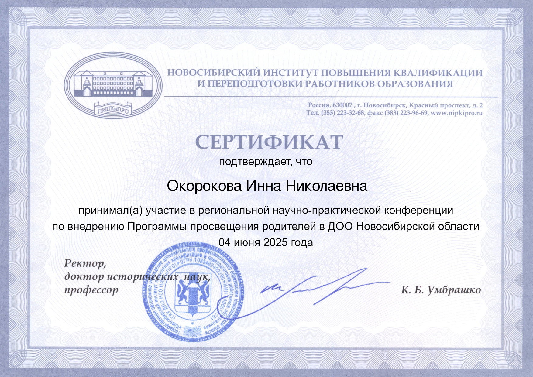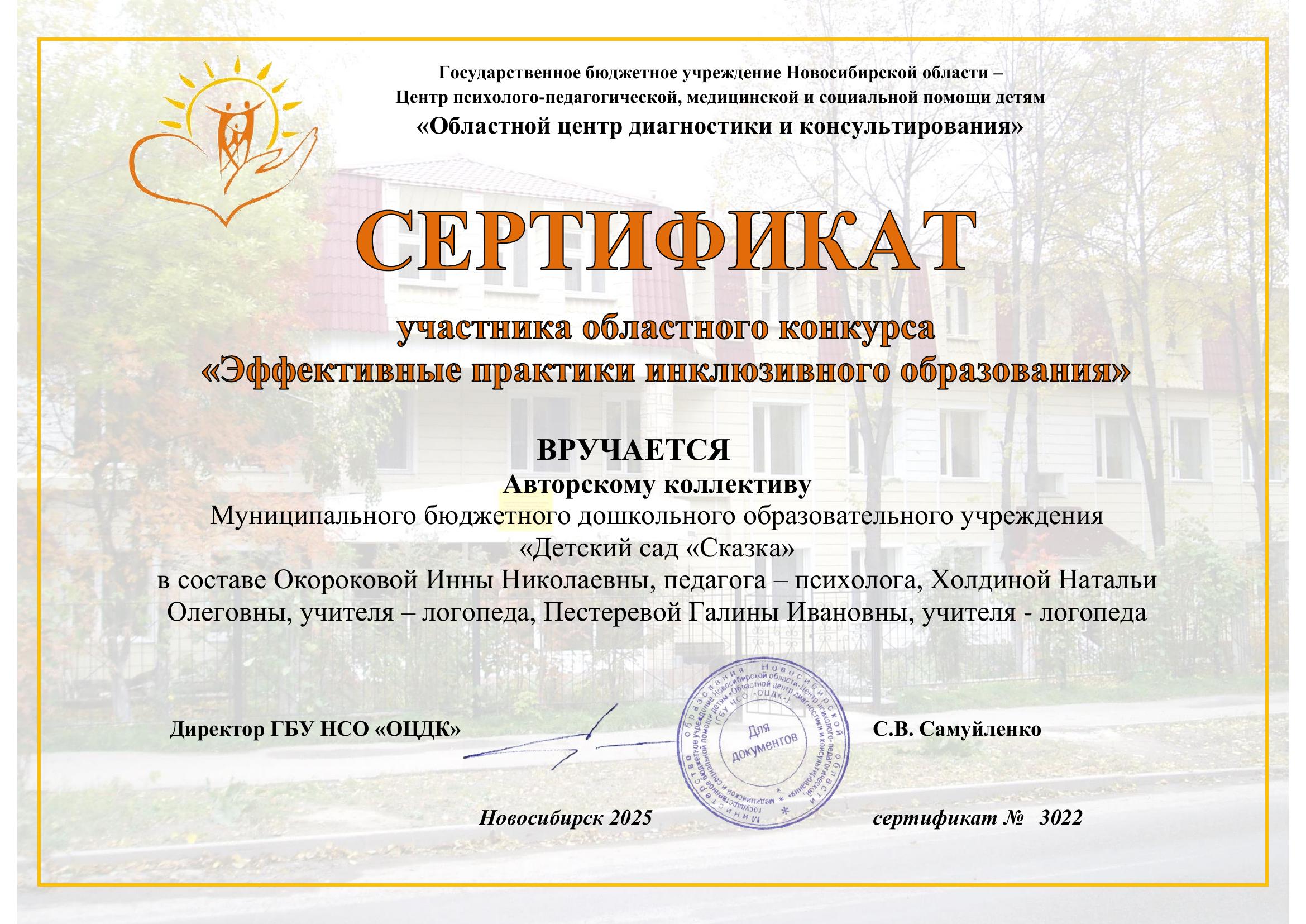Сертификат делегата III съезда дефектологов Новосибирской области