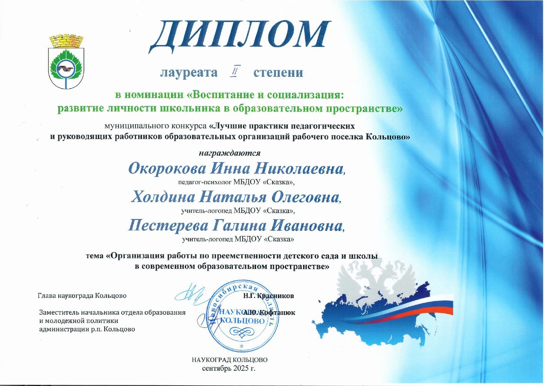 Диплом победителя воспитанника 3 степени